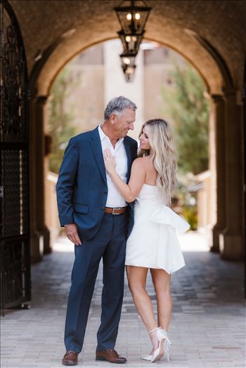 Allegretto Vineyard Resort wedding in Paso Robles California in San Luis Obispo County by Mirror's Edge Photography. Beautiful Italian Tuscan style villa for upscale wedding day vibes on the Central Coast. Bride and Groom at sunlit hallway.